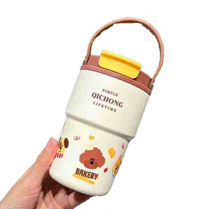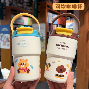 新款卡通高颜值双饮咖啡杯316不锈钢保温杯便携茶水分离随手杯