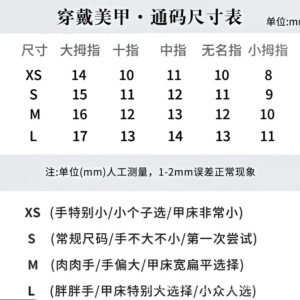 XS码(手特别小/个子小/甲床小拍)