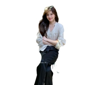 夏日封神衬衫!老钱风亚麻立领衬衫女夏宽松气质薄款上衣