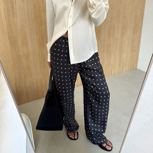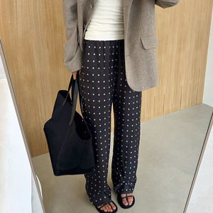 2025秋冬新款宽松舒适波点长款直筒裤设计感气质时尚休闲跨境通勤