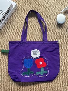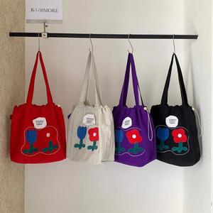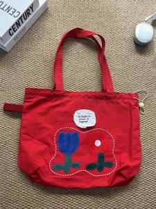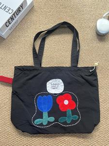 花朵帆布包包学生党2025新款大容量松弛感通勤包上课夏天托特包潮