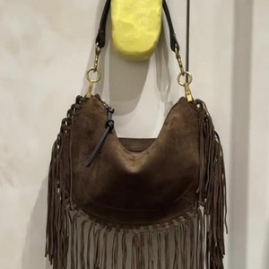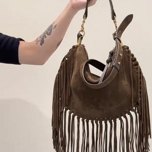 网红2025秋冬新款复古流苏麂皮绒面磨砂单肩包波嬉风半圆斜挎包女