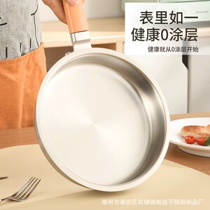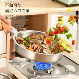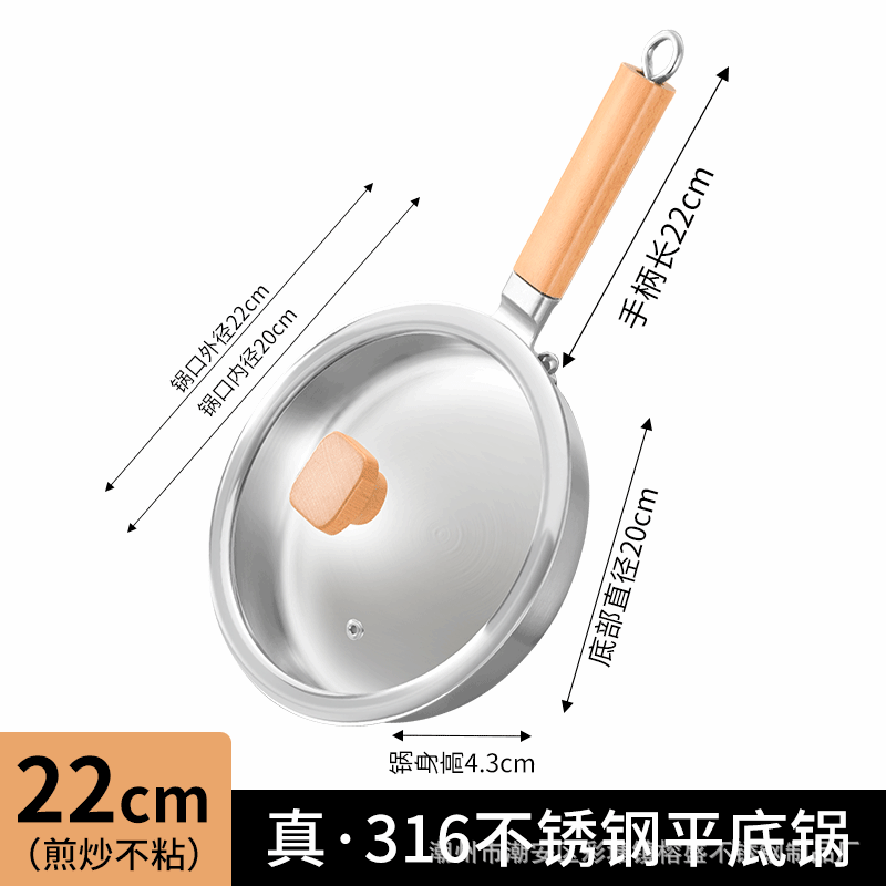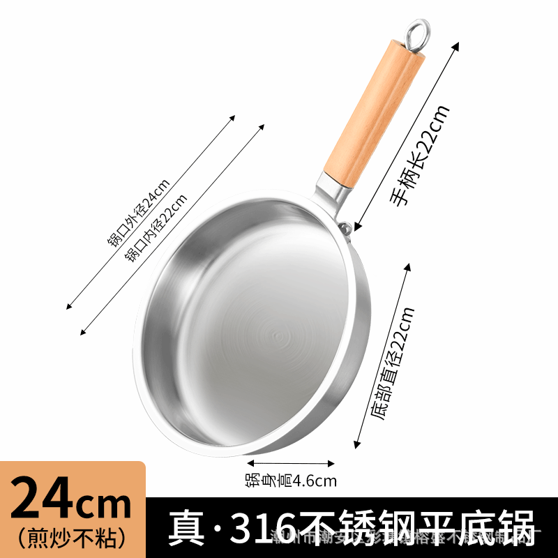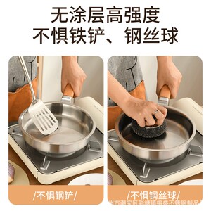 无涂层不粘锅加厚五层钢日式木柄煎锅平底锅家用电磁炉燃气灶通用