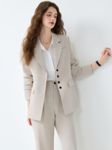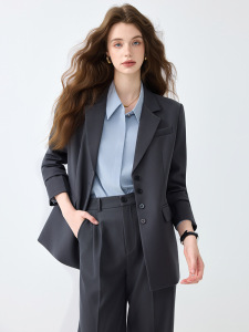 灰色职业西装套装女春秋2025新款大学生考公面试正装通勤西服外套