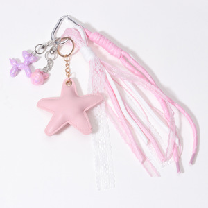 PK05078128F爱心钥匙转圈五角星蝴蝶结流苏粉色