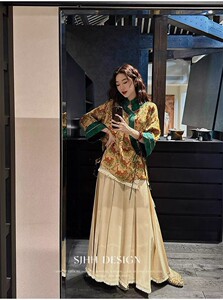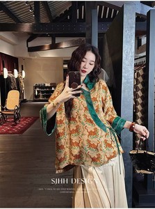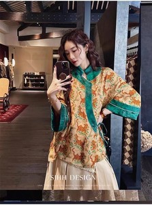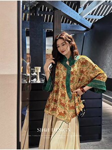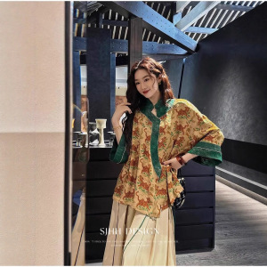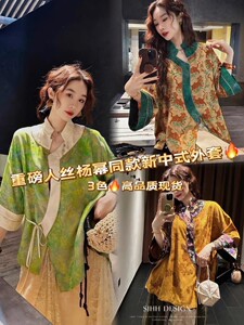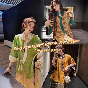 杨幂同款新中式立领宽松七分袖衬衫秋款人丝交织提花国风上衣女