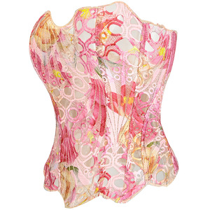 束身镂空夏季收腰碎花欧美复古胸衣跨境货源鱼骨紧身塑身衣印花女