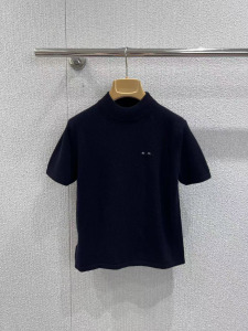 南油女装M家25早秋新款胸前微标字母百搭复古羊绒针织衫短袖上衣