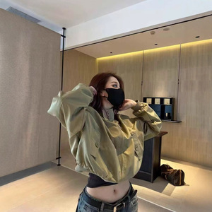 mi u束腰双面穿夹克外套撞色格子女25早秋7月新品显瘦立领夹克