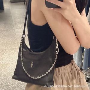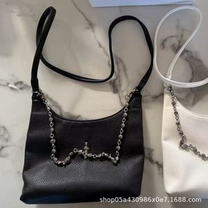 外贸订单百搭朋克风街头复古链条牛皮单肩VIVI链条十字架包女包