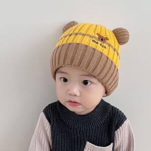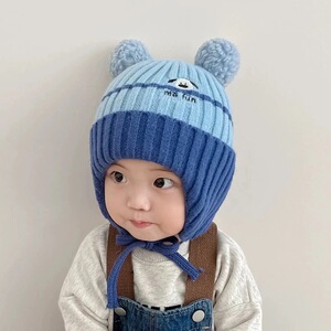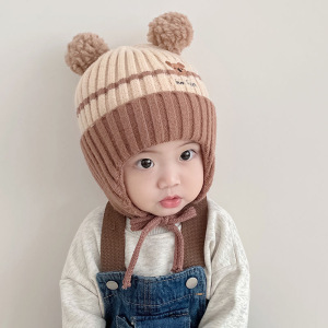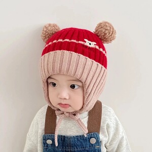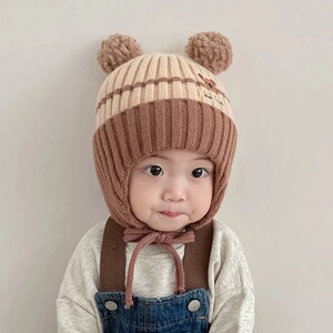 宝宝帽子冬季新款男童女童保暖针织护耳帽可爱超萌婴儿毛线套头帽