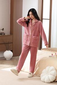 睡衣女士法兰绒秋冬季保暖加厚蓝色开衫长袖长裤家居服可外穿套装