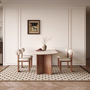 半弧形餐桌洞石岩板餐桌半圆餐桌椅组合轻奢高级岩板家用小户型桌