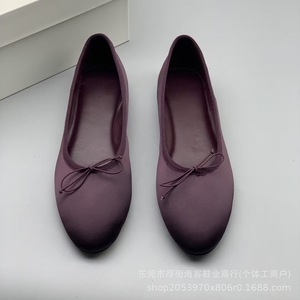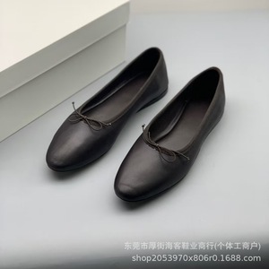 莞产高版本!柔软羊皮芭蕾舞鞋真丝圆头平底浅口蝴蝶结奶奶单鞋女