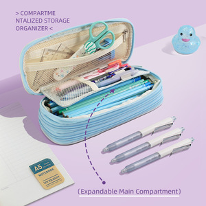 跨境热卖三层笔袋学生手提式大容量 ins风创意高颜值文具盒收纳袋