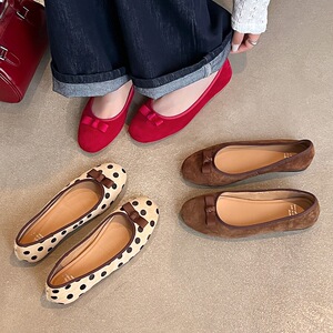 超软蛋卷鞋羊反绒面2025秋平底圆头真皮浅口软底单鞋女大小码可退
