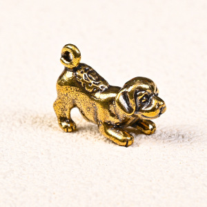 旺财福气小狗立体十二生肖黄铜摆件 中式创意招财狗钥匙扣小礼品