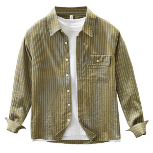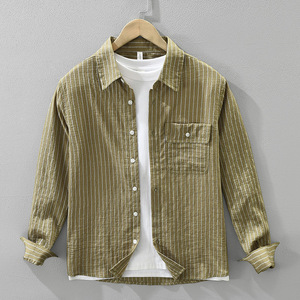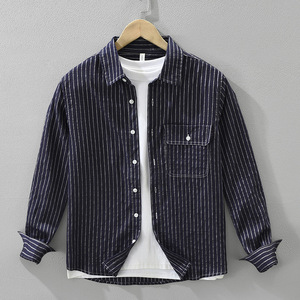 7710日系条纹新款长袖衬衫时尚百搭文艺休闲宽松上衣男装一件代发