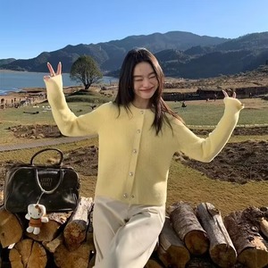 pusumede软糯亲肤!多巴胺仿貂毛开衫毛衣女气质温柔慵懒针织上衣