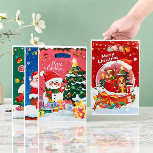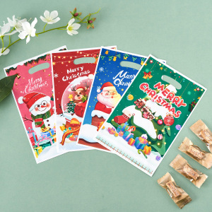 跨境新款圣诞节珠光膜塑料回手礼手提袋糖果饼干礼品opp袋厂家批