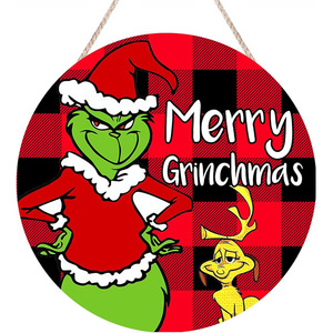 跨境亚马逊热销新品圣诞节冬季装饰门牌圆牌木质工艺品装饰挂牌