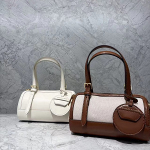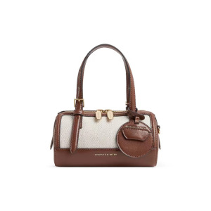 小C家2025新款时尚百搭手提帆布枕头包高级感撞色挂饰波士顿女包