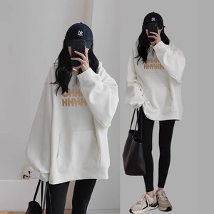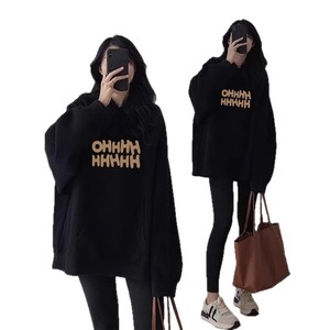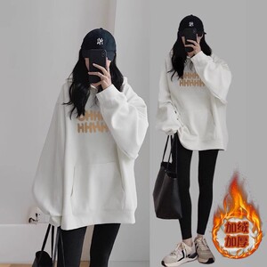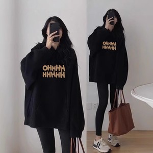 黑色字母卫衣女春秋季2025新款时尚宽松连帽中长款加绒加厚上衣潮