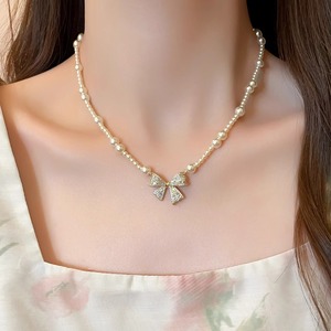 锆石施家珍珠串珠蝴蝶结项链法式优雅甜美锁骨链轻奢高级感颈链女