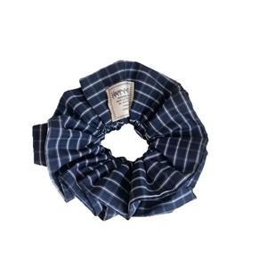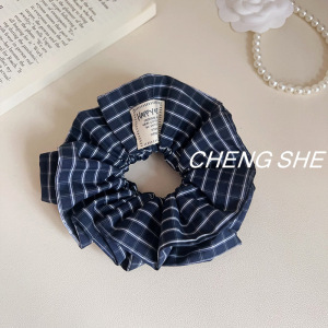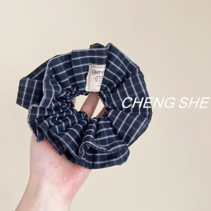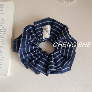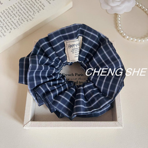 韩国藏青格纹双层大肠发圈女气质扎头发丸子头发绳低马尾头绳发饰