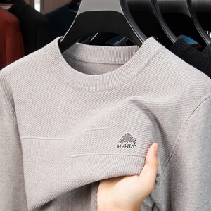 新款男士纯色毛衣男圆领长袖针织衫秋装打底衫男中年爸爸装毛衫