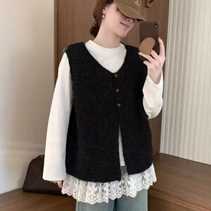跨境百搭软糯慵懒风毛衣马甲女2025早秋新款宽松叠穿针织背心坎肩