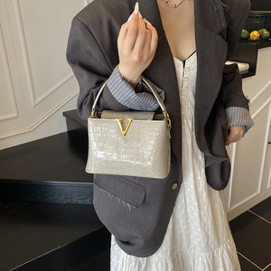 2025跨境新款石头纹手提包轻奢时尚复古潮流女士单肩斜挎包水桶包