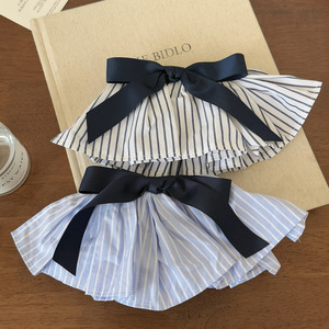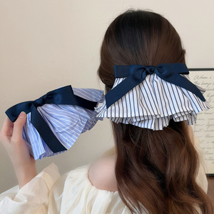 韩系学院清新蓝白条纹弹簧夹蝴蝶结条纹裙摆发夹高级感后脑勺发卡