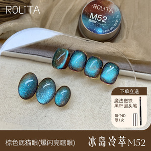 2025新款棕绿色猫眼指甲油胶蓝色爆闪晶石玻璃珠罐装美甲专用套装