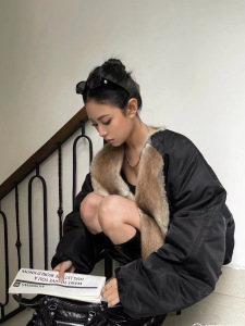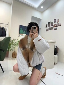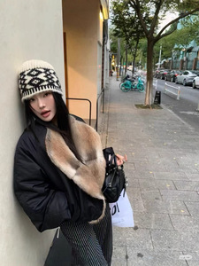 秋冬新款圆领大翻领短款青根貂皮毛领派克羽绒服女休闲时尚派克服