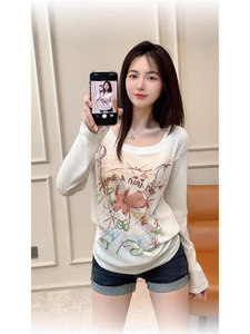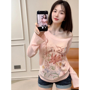 慵懒风夏季新款时尚涂鸦印花宽松T恤ins长袖春秋薄款微透防晒罩衫
