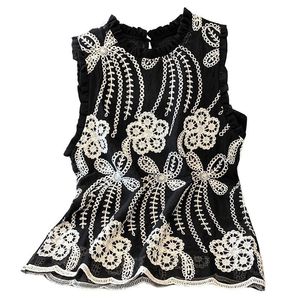 复古刺绣蕾丝上衣女装无袖坎肩背心夏季新款宽松雪纺衬衫外穿小衫