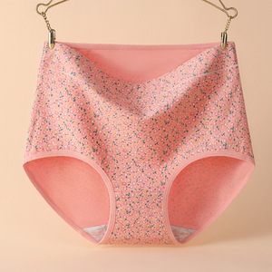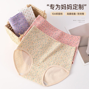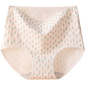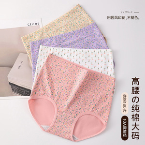 高腰收腹碎花女士纯棉内裤大码抑菌裤裆高弹舒适透气包臀三角裤头
