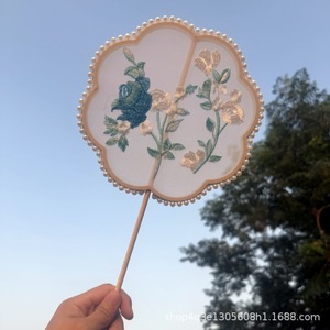 批发新款玫瑰刺绣古风扇子汉服团扇拍照走秀宫扇旗袍古典舞跳舞扇