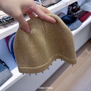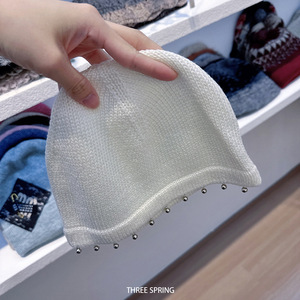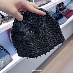 批发韩国2025年早秋新款秋冬钉珠流苏针织帽女显脸小护耳辣妹冷帽