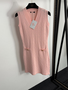 重工老花提花毛织打底连衣裙女2025年夏季新款无袖修身圆领针织裙