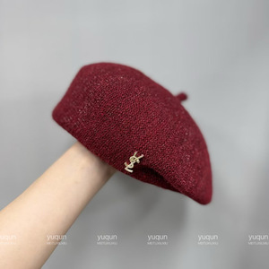 亮丝贝雷帽-红色
