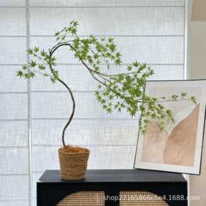 楼夏家仿真绿植流泉枫室内玄关装饰禅意摆件盆景高端轻奢假花植物