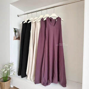 紫色挂脖露背V领连衣裙女夏季2025新款法式气质收腰显瘦A字长裙子