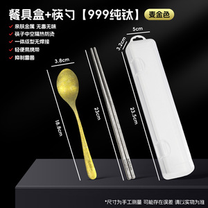 纯钛轻奢勺子筷子学生上班族户外野营抗菌餐具套装旅行便携三件套