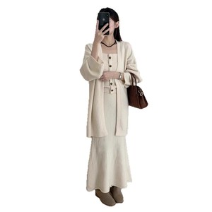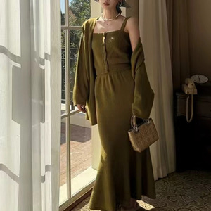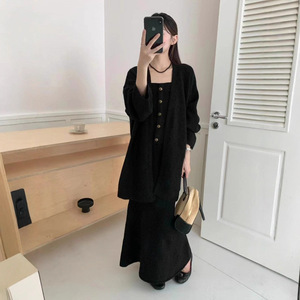 秋冬新款套装女韩系慵懒风背心开衫半身裙三件套2025纯欲抹胸上衣