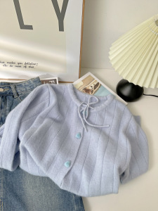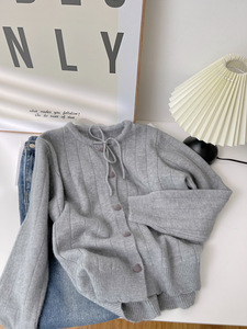 多色韩系基础款百搭单排扣圆领长袖针织开衫上衣女2025新款6036