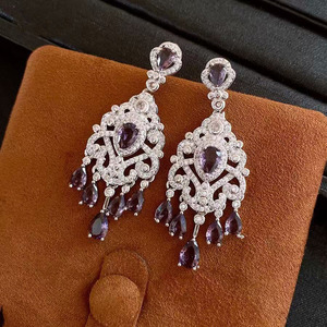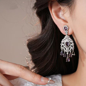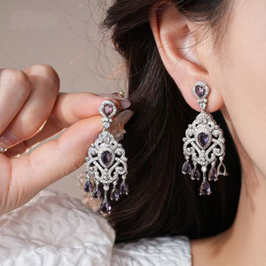 【重工系列】紫色水滴流苏耳环轻奢高级感法式复古爆闪礼服耳饰