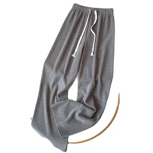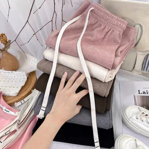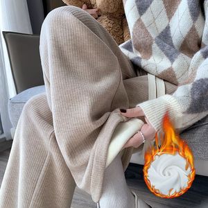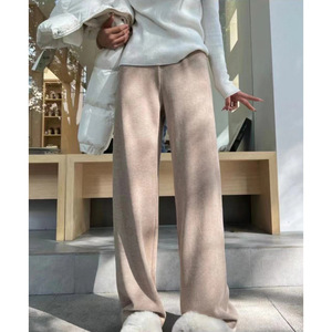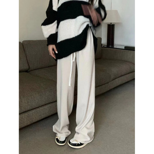 秋冬款针织小羊绒阔腿裤女休闲加绒直筒裤高腰松紧抽绳糯米拖地裤