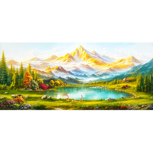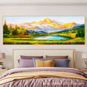 背靠金山日照金山卧室床头装饰画自粘画客厅壁画自带背胶画聚宝盆